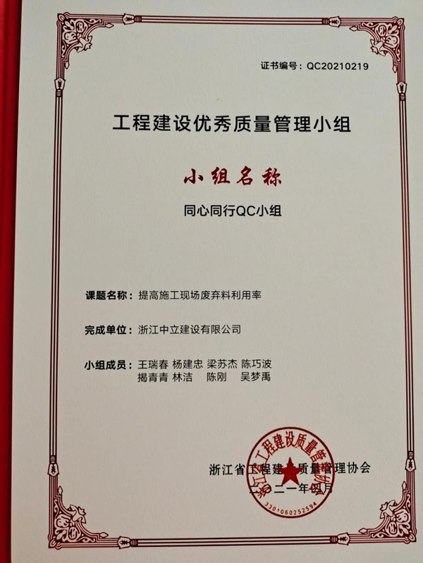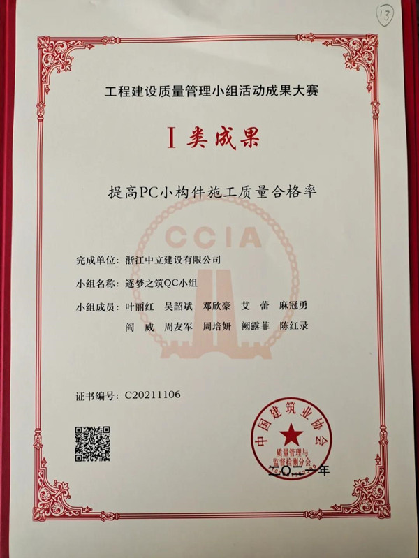 近日,從中建協(xié)傳來喜訊,中立公司逐夢之筑QC小組獲工程建設(shè)質(zhì)量管理小組活動(dòng)成果大賽Ⅰ類成果。今年我公司QC成果取得豐碩成績,另外樹人之心QC小組獲得浙江省優(yōu)秀QC成果一等獎(jiǎng)1項(xiàng)、同心同行QC小組獲浙江省優(yōu)秀質(zhì)量管理小組。
