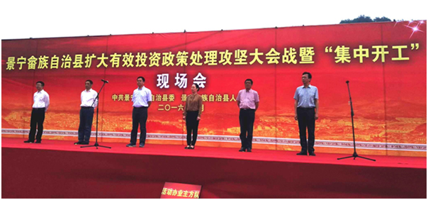 2016年5月25日下午,景寧畬族自治縣擴大有效投資政策處理攻堅大會戰暨“集中開工”現場會,在我公司中標承建的景寧縣中心糧庫遷建工程現場舉行。景寧縣政府領導,職能部門、工程所在地鄉鎮領導,建設、施工和監理單位代表,參加了本次現場會。景寧縣中心糧庫遷建工程作為集中開工的主要工程項目,我公司副總經理譚俊勇代表我公司作施工單位表態發言。