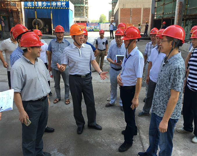 督查組聽取了項目部負責人薛新和項目基本情況以及工程施工中的新設備使用、新做法的介紹,并察看了施工現場各項管理工作。在督查中,楊副廳長充分肯定了中立公司在項目管理工作上取的成績,對干凈整潔的施工現場和管理到位的防揚塵工作給予較高評價。