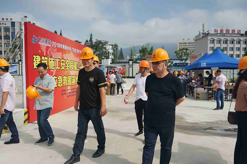 6月15日上午,麗水市住房和城鄉建設局召開麗水市“安全生產月”建筑施工安全質量工作現場會暨應急救援演練觀摩會,我公司承建的麗水市人民醫院東城院區項目部為本次會議的觀摩現場、公司副總經理吳韶斌代表施工單位在大會上作交流發言。