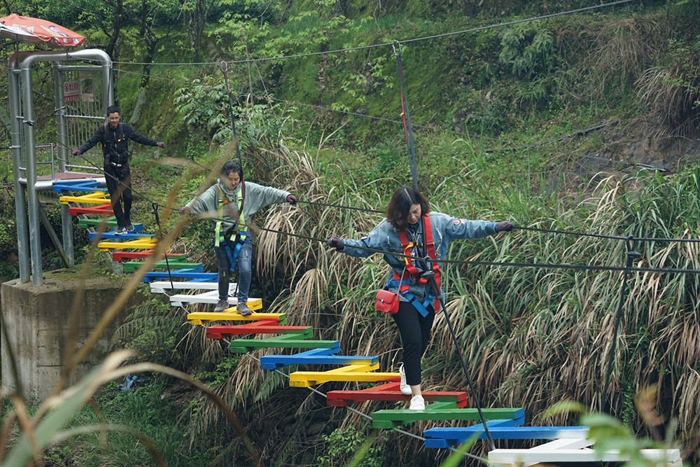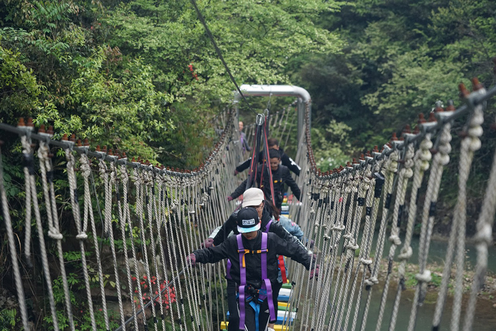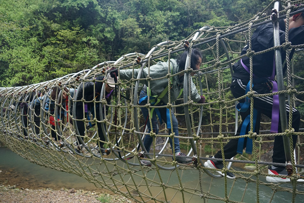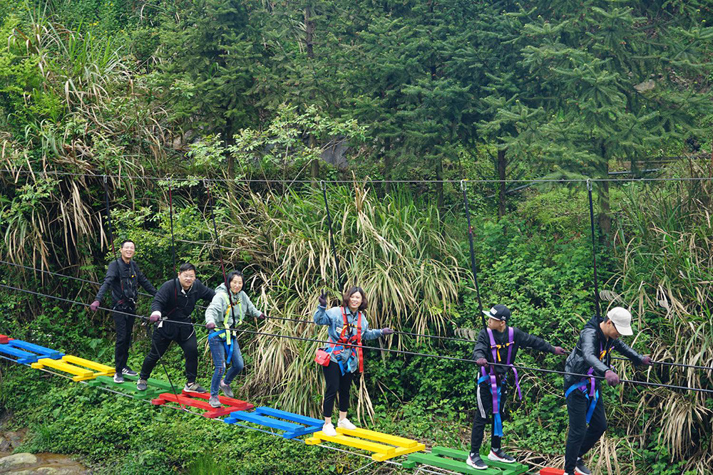 早上9點,在董事長和總經理的帶領下,大家到達目的地,員工們便開始了拓展穿越活動,大家團結協作,挑戰自我,突破一關又一關的項目,最終成功到達終點,大家臉上都洋溢著自信笑容。