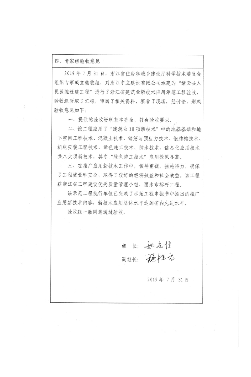 我公司承建的“縉云縣人民醫(yī)院遷建工程”通過了浙江省建筑業(yè)新技術(shù)應(yīng)用示范工程驗收。該工程是我公司也是麗水市本地企業(yè)首次榮獲浙江省建筑業(yè)新技術(shù)應(yīng)用示范工程,取得了較好的經(jīng)濟效益和社會效益。通過開展技術(shù)創(chuàng)新活動是我公司提升企業(yè)知名度,提高整體技術(shù)管理水平,鍛煉隊伍培養(yǎng)人才的重要途徑。